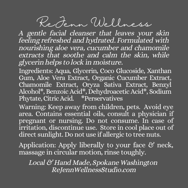 A gentle daily facial cleanser that leaves your skin feeling refreshed and hydrated. Formulated with nourishing ingredients such as aloe vera, cucumber extract, and chamomile extract that soothe and calm the skin, while glycerin helps to lock in moisture.