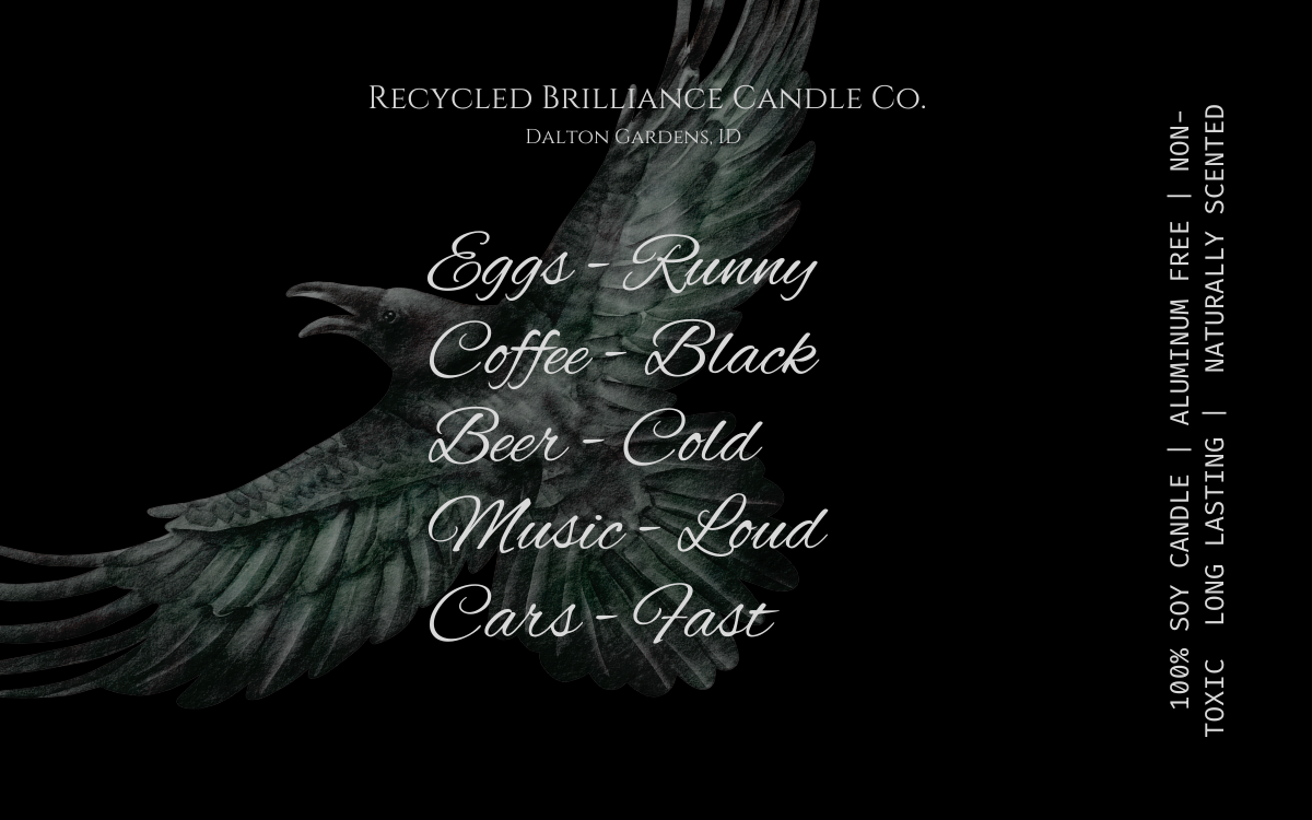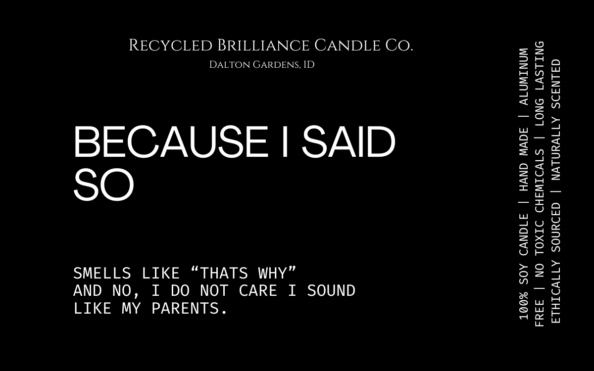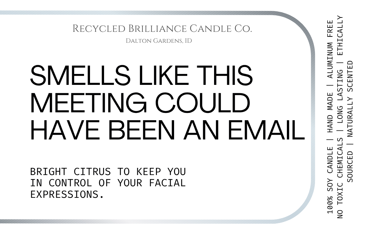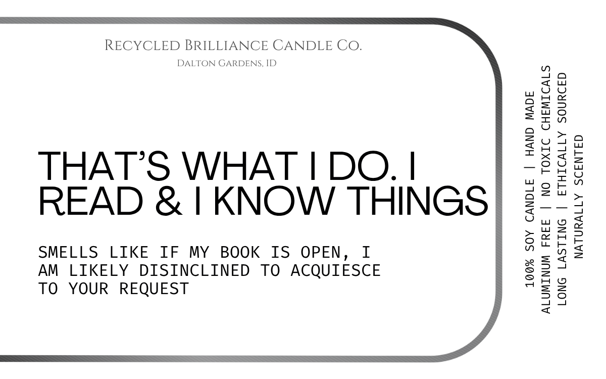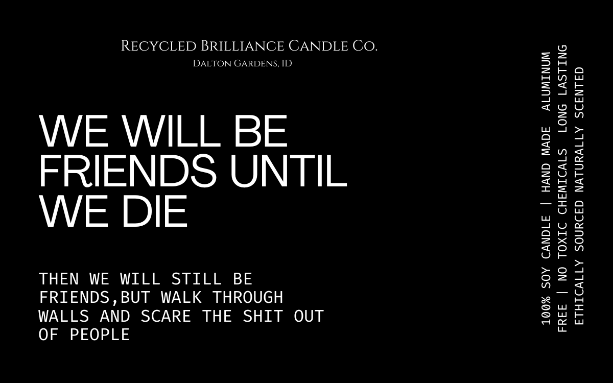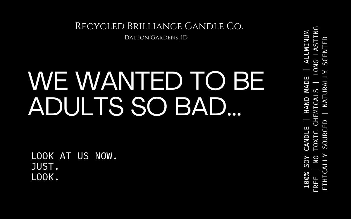 If you have seen us at a show, or just came across us online, you should know that your health is number one, and humor is our style. Our candles each come in your own customized label, either featuring a quote from you favorite book, or one of our fun sarcastic humor quotes. If you have one of your own, we are happy to bring your creation to life!