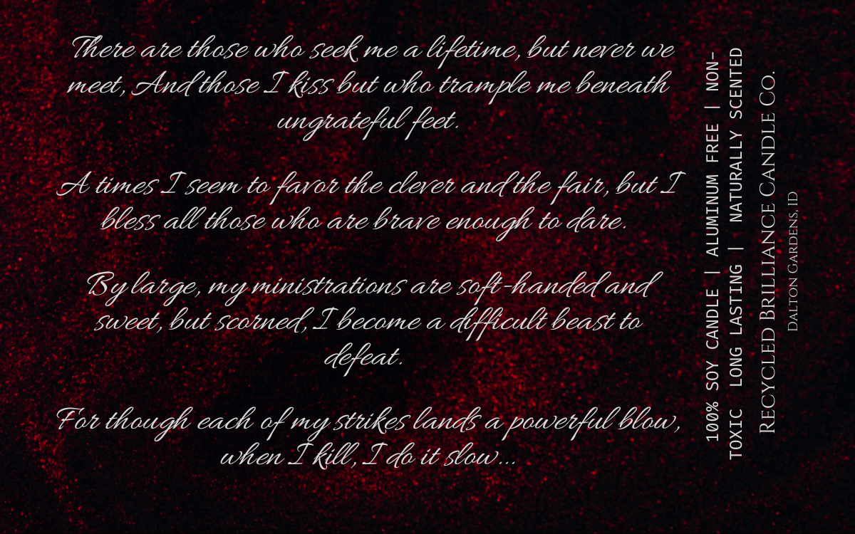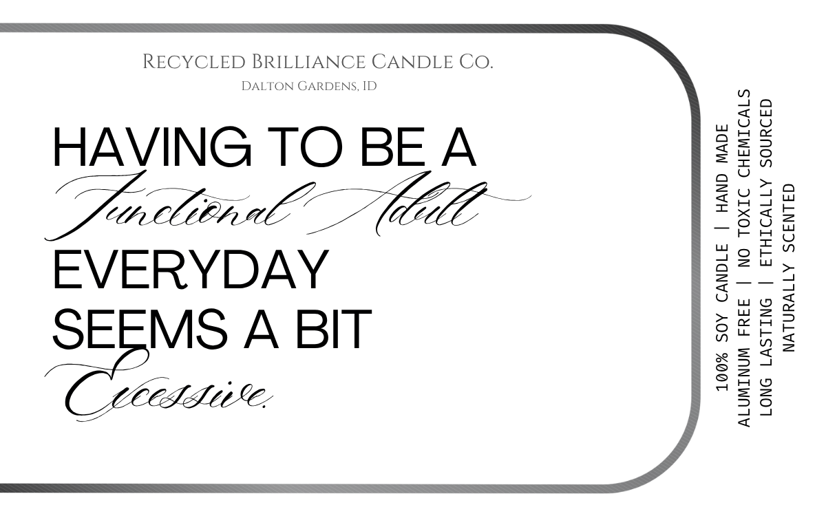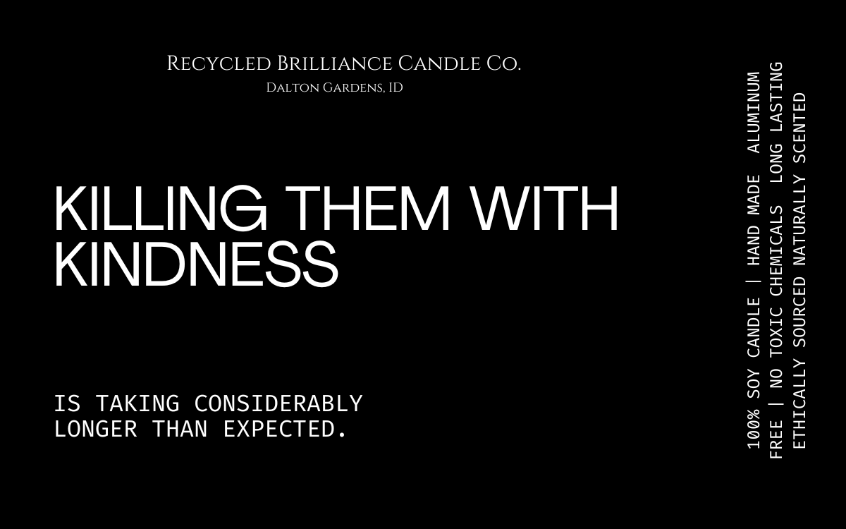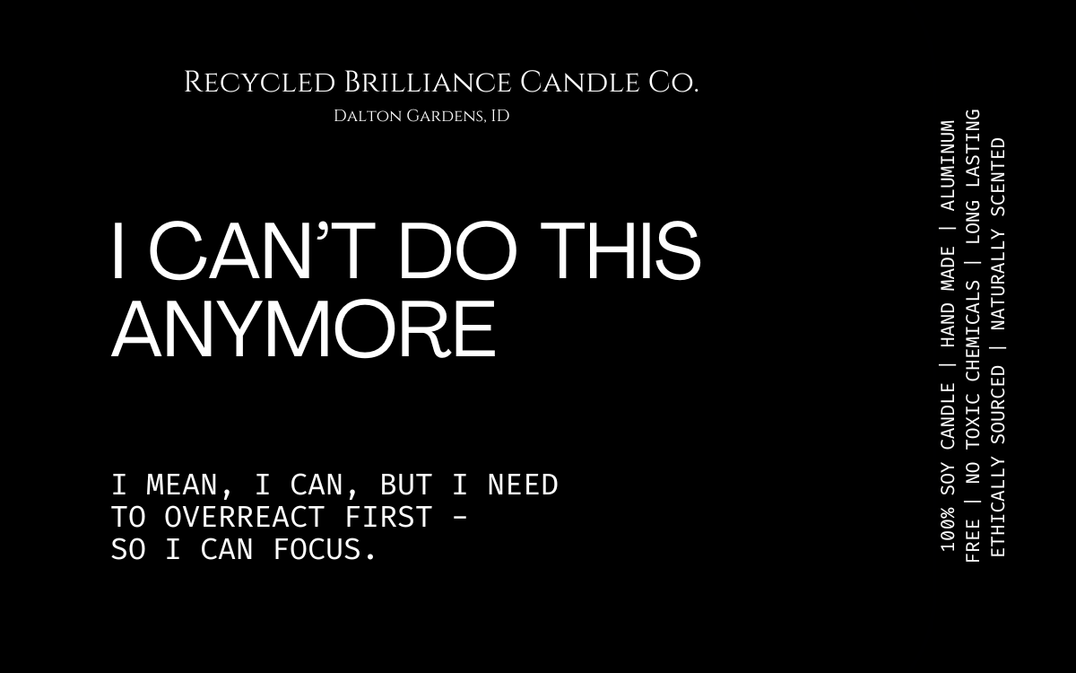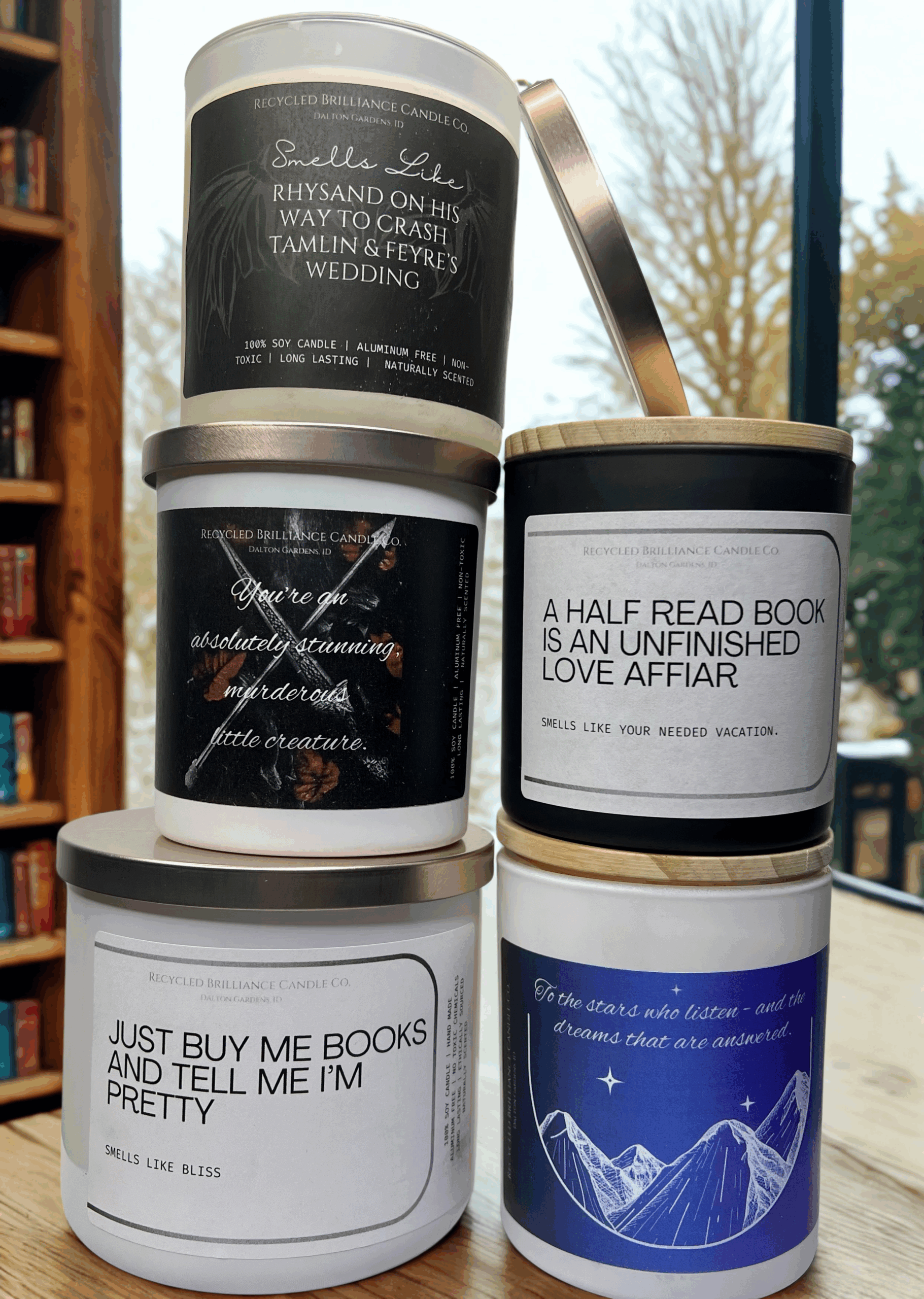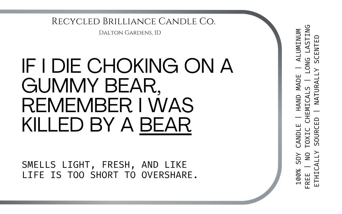 If you have seen us at a show, or just came across us online, you should know that your health is number one, and humor is our style. Our candles each come in your own customized label, either featuring a quote from you favorite book, or one of our fun sarcastic humor quotes. If you have one of your own, we are happy to bring your creation to life!