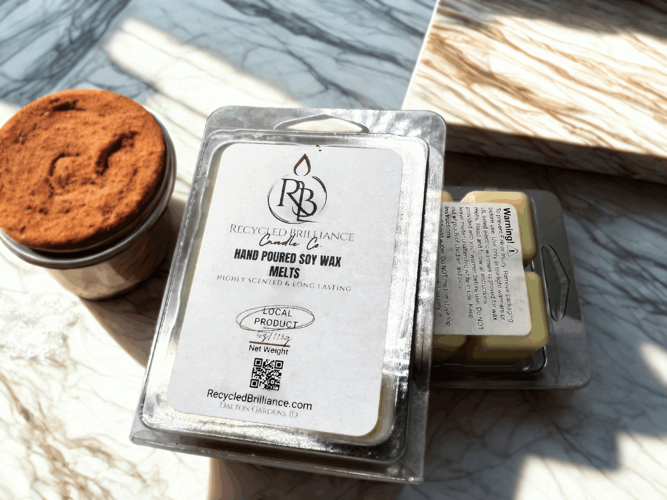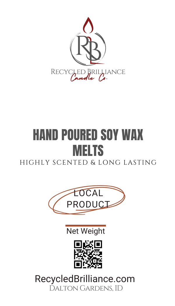 Recycled Brilliance Wax Melts are a whole new spin on this icon of the marketplace. Every one of our melts are hand poured in house, with consistency and quality. Like to their candle counterparts, they are 100% natural veggie soy, GMO free, and clean burning. Keeping with our promise of no additives, they also are silky pure white in color, and why not? We don’t really need color to signify scent if we have done our job correctly. These little guys are highly scented, and, last about 8 to 10 hours per block, with continuous use. All the scents offered, are, of course, 100% phthalate free. Testing showed their scent will outlast their competition, due to their lower melting point allowing for consistent scent throw, and at 6 blocks per container, should offer you about 60+ hours of enjoyment. Their containers are completely recyclable, please just throw them in with your co-mingle. If there is ever an accident and your warmer gets knocked over, no need to google clean up; this veggie based wax is non staining, and will clean up with soap and water. You have enough to worry about, RB wax melts are hassle and health risk free. Pat yourself on the back, another good decision for the books.
